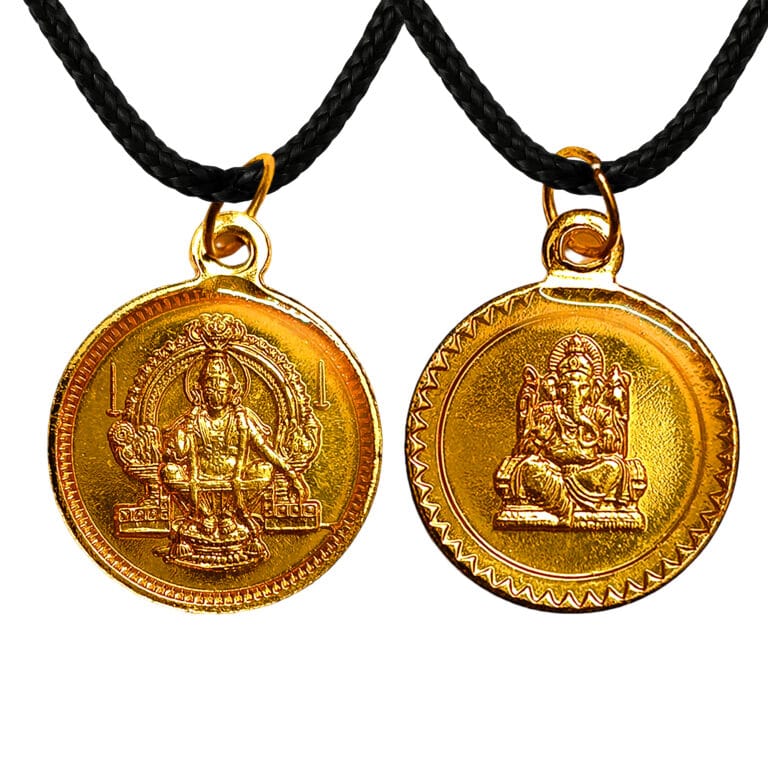 Gold Finish Resin Enamel Dual-Sided Dollar – Swami Ayyappan & Lord Ganesha Round Pendant